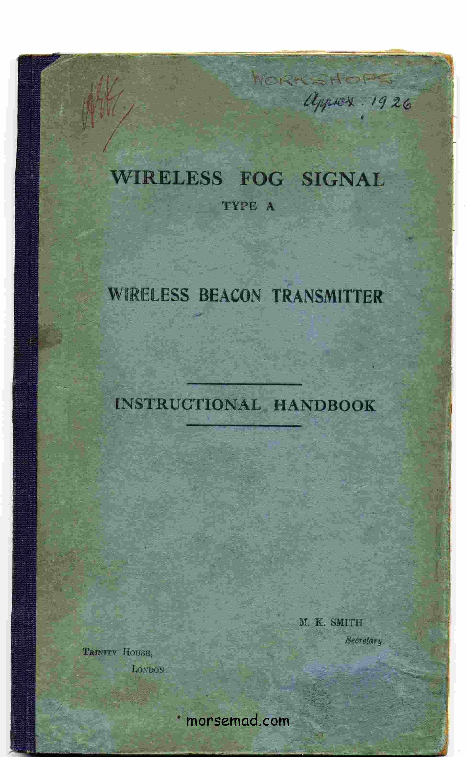 WIRELESS BEACON TRANSMITTER Instructional Handbook. Trinity House. Approx 1926.
