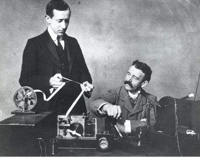 Guglielmo Marconi and George Kemp in 1901. The Inker can be seen left of center.