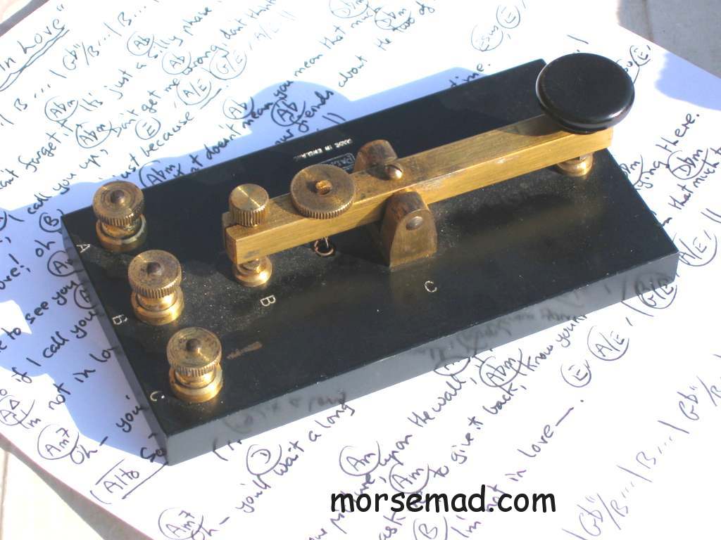 Got this very nice key from a radio rally recently. A very neat and well made brass morse code transmitting key on an ebonite (?) base measuring 5 1/2" by 3".