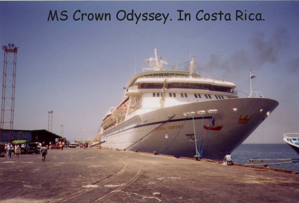 Crown Odyssey C6II4, at Puntarenas, Costa Rica, 1994 ( 9deg 54'45.50" North. 84deg 43'09.17" West). As of 2008 lengthened and re-named Balmoral [Fred Olsen Lines].