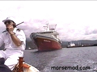 Rig was a collection of six Howes Kits to give a CW 20 Meter transceiver with home brew relay TX/RX switching, a 12 Volt- 6 Amp/hour battery and a G Whip vertical antenna on a mag-mount stuck to the Trap Shoot mounting ( when they weren't using it ! ). I had hundreds of QSO's and all great fun. Some of the most enjoyable contacts were to other maritime mobile stations. A few from the log: G0DKS/mm-Ron, EA1FBJ/mm-Jose, G4WUH/mm-Ian, IK3CRK/mm, UR5FAV/mm-Alex, UT5JBZ/mm-Alex, G3OOK/mm-John, UU7JU/mm-Vic, G4NCZ/mm-John, OK4PEN/mm-Libor, ON4CAB/mm-Bart, W7SW/mm-Scotty.
