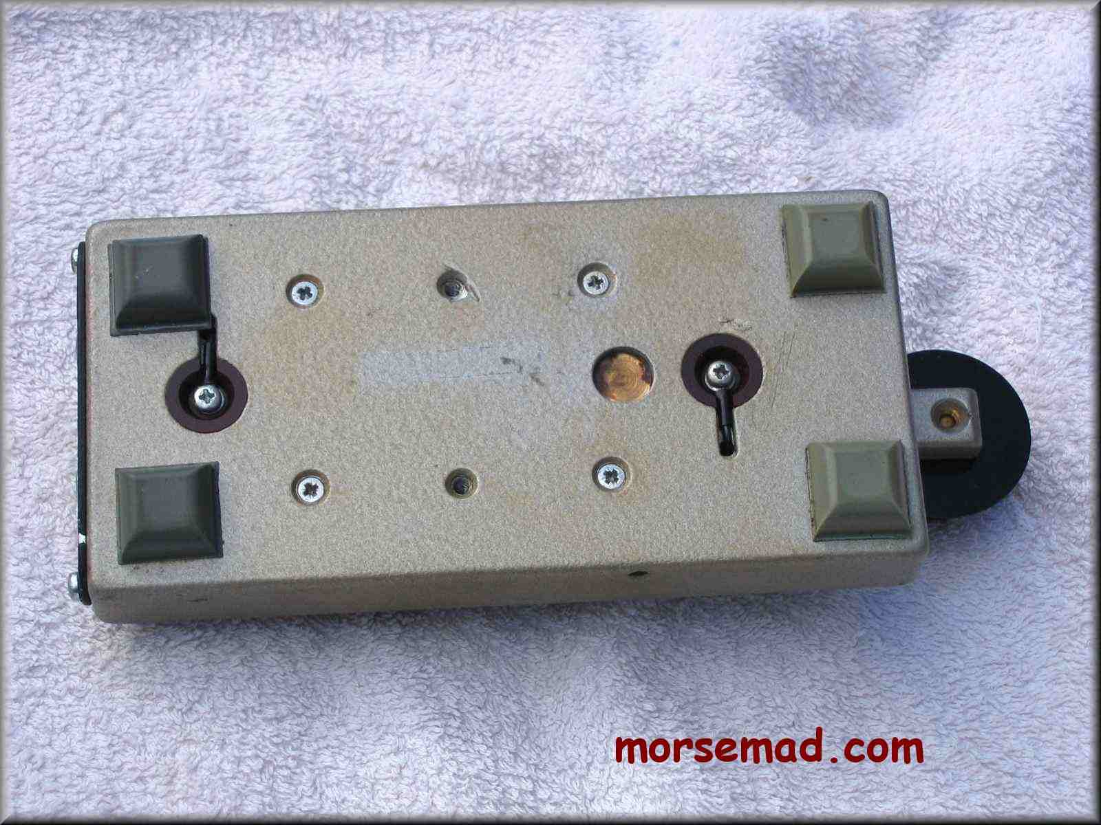 There is a hole on the right side that has a 2mm hex socket inside for clamping the lower contact. Underneath can be seen two threaded holes for bolting the key to a base. Also - note the two sockets to take 5mm plugs, I have not seen that type on a morse key b4.