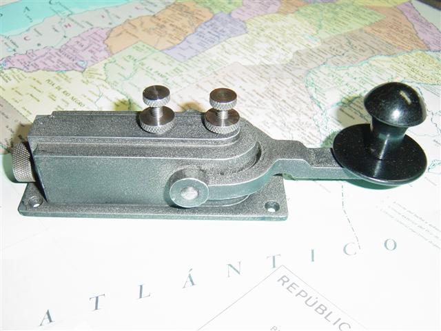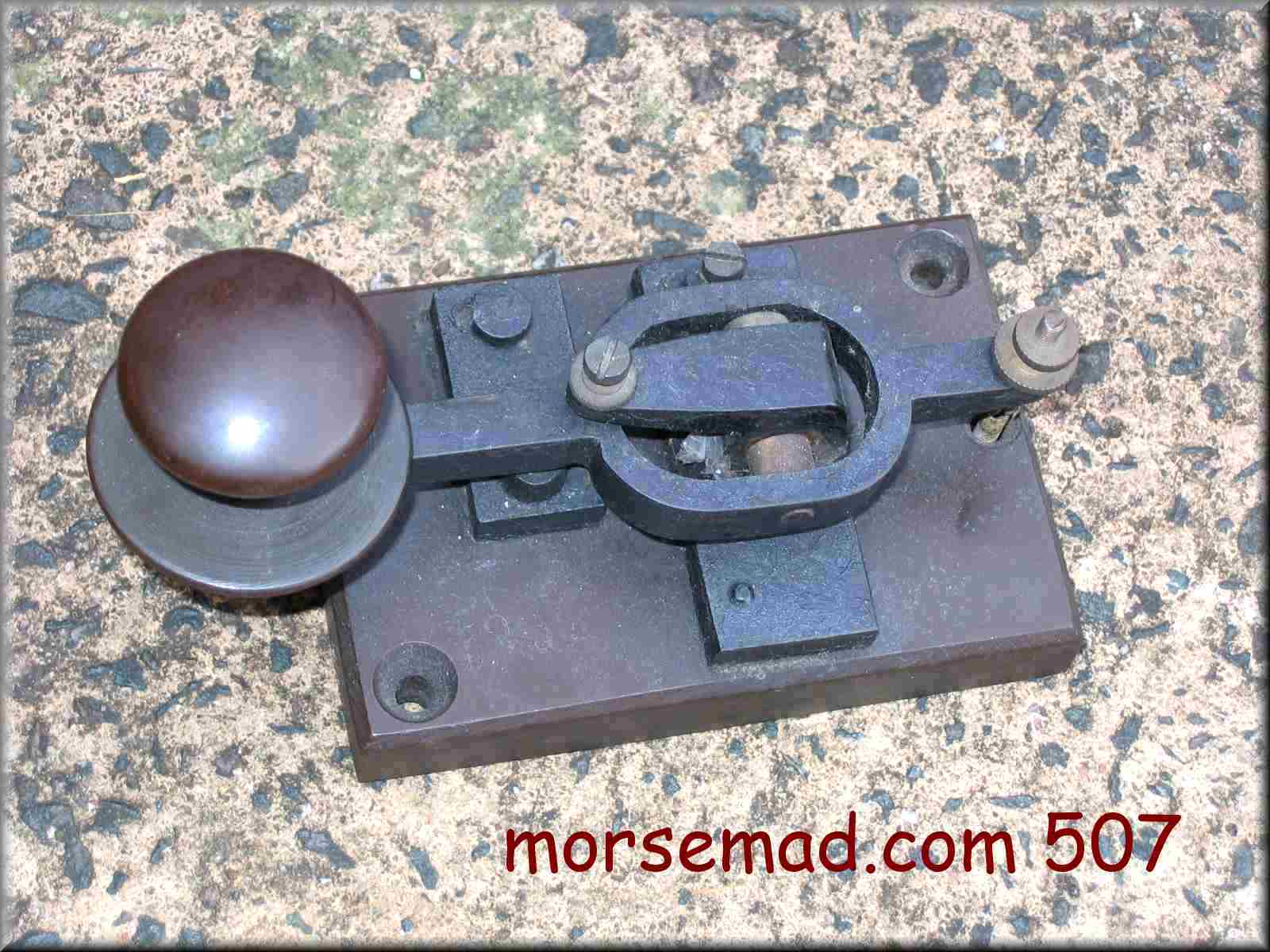 marine key, with a smaller cast alloy base and bakelite type brown 1/8" thick upper & lower panels. The mini toggle switch acts as a circuit closer.